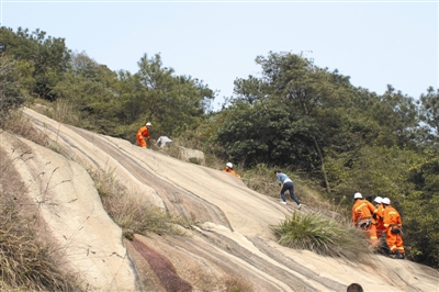 小薛等3人下山途中,碰上了一片悬崖。3人抓着悬崖上的草木下山,其中小赵的胳膊不小心扭伤。最后,3人被困在悬崖中间。半个多小时过去,小薛等人体力不支。“我们还没吃午饭,太阳晒得让人发昏,随时可能发生危险。”考虑到安全问题,小薛打电话向消防部门求助。