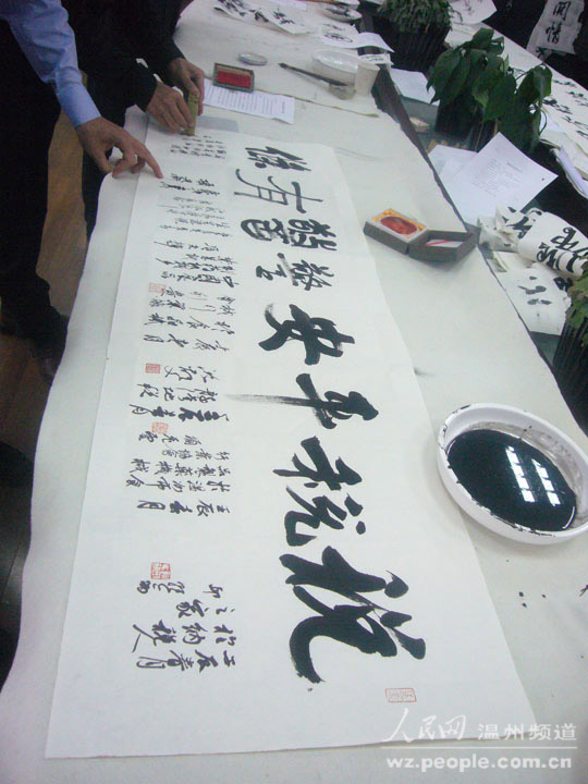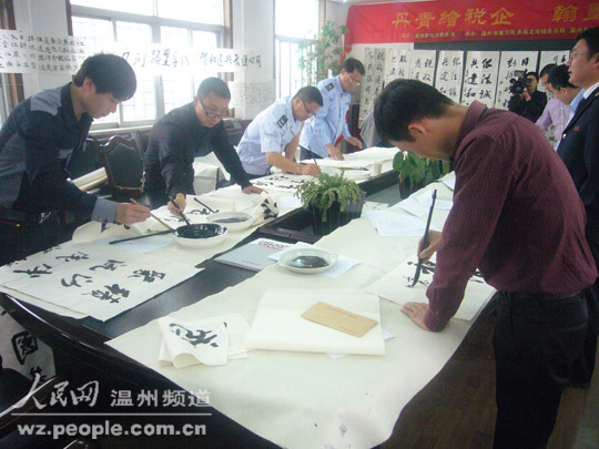图为龙湾地税、企业家等书法爱好者共同创作书法作品