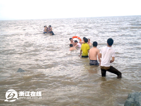 9名游客被困海中命悬一线 龙湾民警入海拉绳营救