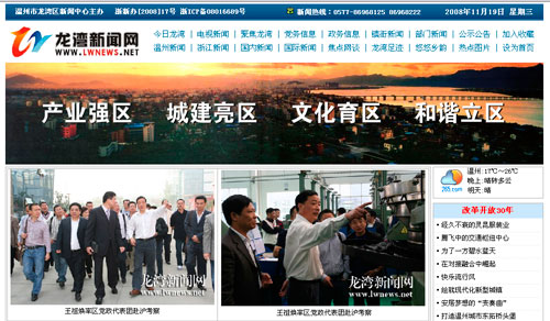 龙湾新闻网由区委宣传部主管,区新闻中心主办。自去年5月30日区委常委会研究决定创办以来,先后完成了机构设立、设备采购、申报审批等筹备工作,于今年2月开始试运行。目前,已开设今日龙湾、电视新闻、新闻头条、焦点网谈、区外媒体看龙湾、图片新闻等15个新闻栏目和龙湾足迹、经济广角、企业风云、名优特产等10个特色栏目。此外,根据不同时期的宣传重点,分别开设“学习贯彻十七大精神”、“改革开放30周年主题宣传”等专题栏目,成为外界了解龙湾的重要平台。