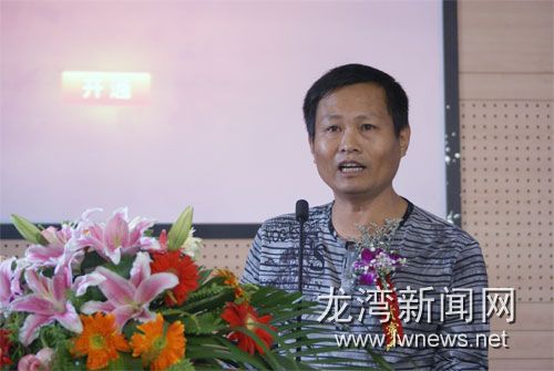 区委宣传部副部长、区新闻中心主任柯斌祥介绍我区一年来新闻宣传工作和龙湾新闻网筹备情况。