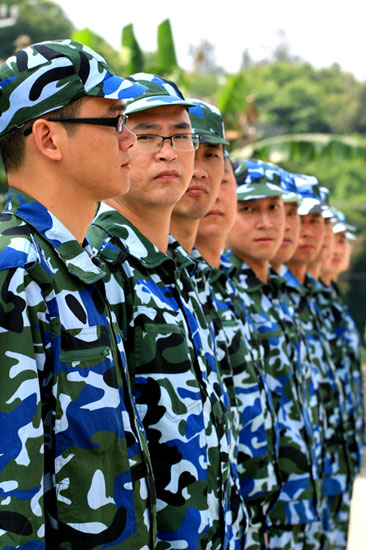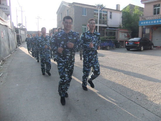 6点起床出操、7点早餐、8点训练、11点半午餐,下午2点半训练……在民兵连,学员们身着清一色的迷彩服,出早操,练队列,唱军歌,训练格斗动作,每天的作息安排井然有序。