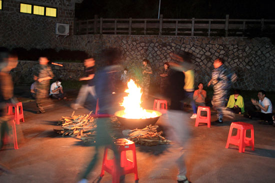 虽说军训生活按部就班,规律得让人觉得枯燥,但学员们在闲暇时间里积极开展文娱和义务劳动,举办拓展训练、篝火晚会、收看海霞主题电影等活动,在单调中增添了许多精彩。