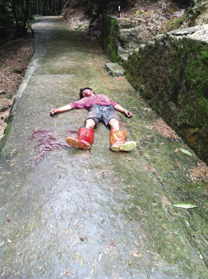 6月24日中午11时,瓯海经济开发区派出所民警接到群众报警后,赶到现场,该男子尚躺在一条山路上昏迷不醒,头部、脚部均有大量血迹。
