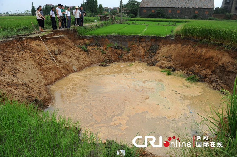 2012年6月27日,江西南昌县冈上镇石湖村李家埠发生一起农田塌陷。图片来源:cfp
