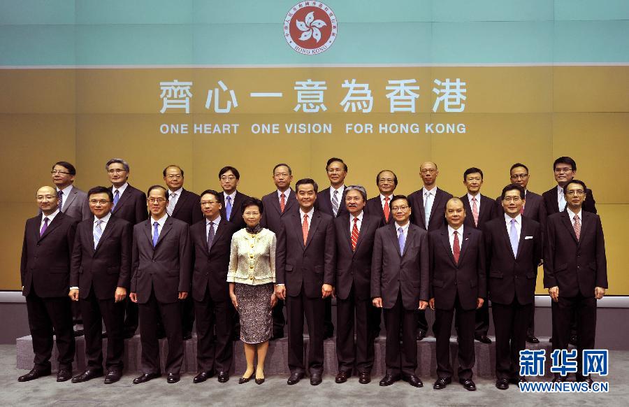 6月28日,依照香港特别行政区基本法的有关规定,根据香港特别行政区第四任行政长官梁振英的提名,国务院2012年6月28日任命香港特别行政区第四届政府主要官员。这是梁振英率刚获得国务院任命的第四届特区政府主要官员亮相。 新华社记者 陈晓伟 摄