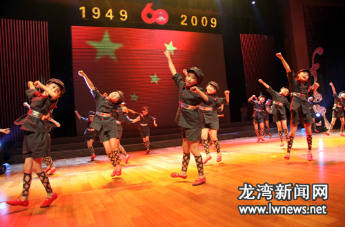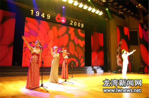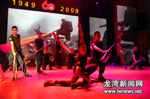 | 9月29日下午,龙湾区庆祝新中国成立60周年文艺演出暨第二届文化艺术节开幕式在区文化中心举行,区四套班子领导出席了开幕式。此次演出由区委、区政府主办,区委宣传部、区文联、区文广新局承办。文艺演出在开场舞《十月欢歌》中拉开序幕,演出主体部分包括《革命的艰辛》、《胜利的喜悦》、《奋进的号角》、《发展的骄傲》和《美好的未来》五大篇章。节目内容丰富、形式多样,从不同角度反映了新中国成立60周年以来我区社会经济取得的成绩,以及全区群众喜迎新中国60华诞的喜悦心情。本网特根据演出内容搜集制作了本专题,以飨读者。(摄影:王鹏、江国荣) |