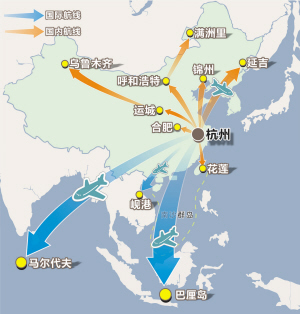 萧山机场近来连续发布了多条开航消息。今年,你打开萧山机场官方网站(www.hzairport.com),经常迎面而来的是“热烈庆祝杭州—××地方航线开通”。