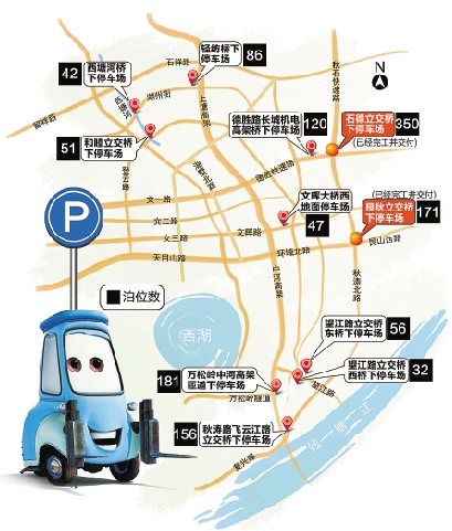 这11个即将用上的公共停车场,分别位于上城、下城、拱墅和江干。其中,江干区的两个停车场,已经完工并交付,正在试运行中。石德立交桥下地面停车场位于石德立交东南角,一共有350个泊位。而艮秋立交桥下停车库就在艮秋立交桥下,共有泊位171个,其中地面泊位106个,机械车位65个。
