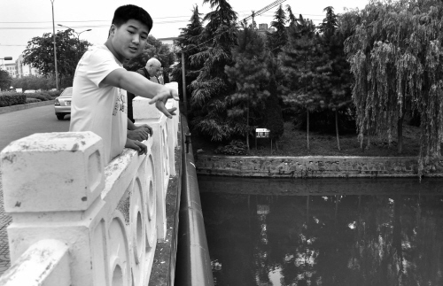 昨天,周鑫浩站在凌塘桥上向记者讲述救人经过。