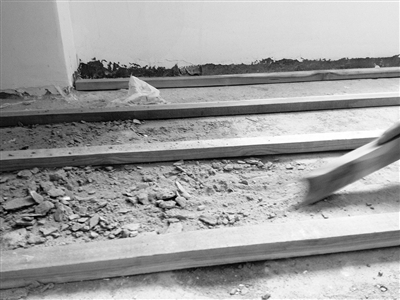 屠先生的新房在“中瑞·曼哈屯”小区23幢,去年5月交付使用。两个月前,屠先生找装修公司对新房进行装修。谁知道,3天前装修工人准备在几个房间铺设地板时,发现房间水泥地面很“脆弱”,用木棍一戳就能轻易戳出一个窟窿来。
