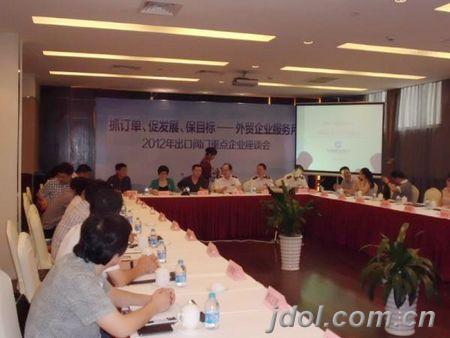 座谈会上,市出入境检验检疫局机电处处长汪波通报了“外贸服务月”活动有关情况,以及2012年上半年阀门出口情况及下半年工作重点;区商务局副局长高强传达了区政府对出口企业的多种优惠政策;建行温州分行代表在会上介绍了为出口重点企业提供融资的便捷平台,推荐了多种融资渠道新品。