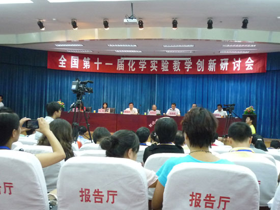 中国教育学会化学教学专业委员会理事长、原人教社社长张健如,中国教育学会化学教学专业委员会秘书长、人民教育出版社化学室主任王晶,河北省教科院院长、教育学会秘书长宋思洁,宣化区人民政府副区长张国庆等领导同志出席开幕式并作讲话,会议由河北省教研员许久奎同志主持。来自全国各省市的四百多位化学教师、教研员和大学教授参加了本次会议。全国22个省、市、自治区以及新疆生产建设兵团等地方学会和教育厅教研室,在初赛、复赛的基础上精心推荐了153项实验创新作品参加了激烈地角逐,比赛分现场创新说明和现场操作演示两个部分。