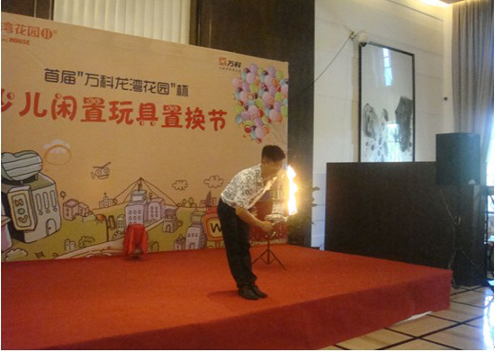 8月5日上午在万科龙湾花园售楼处,由浙南万科主办和搜狐焦点温州承办的首届”万科龙湾花园”杯少儿闲置玩具置换节,赢得了小朋友和家长的喜爱.特别是神奇的魔术表演,现场观众看得目瞪口呆