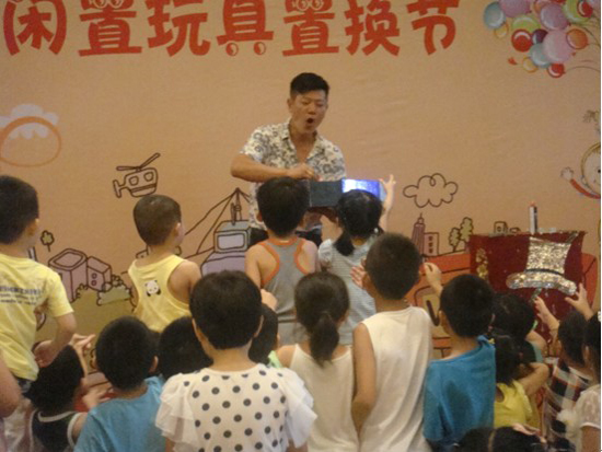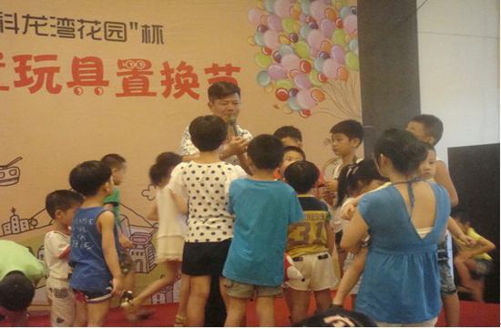 活动中,几乎所有的小朋友都换到自己喜欢的玩具,并且在主持人的鼓励下,交换成功的彼此献上一个深深的拥抱,表示愿意和对方交换,且不会反悔.更精彩的是,在置换的过程中,有的小朋友还自告奋勇的献上儿歌.同现场的观众分享自己的快乐.这些只是活动精彩环节的一部分,更精彩的是接下来的魔术表演……