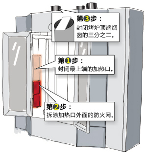 第三步,封闭烤炉顶端烟囱的三分之二。