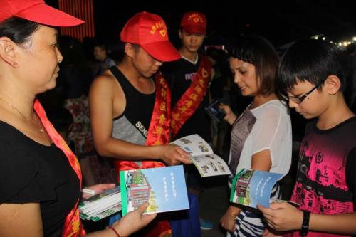 “消防安全要专心,预防为主常挂心;发现火灾不要怕,立即拨打119电话;注意安全慎用火,烟头乱扔要失火;不放烟花不点烛,不拉电线不乱接;防止起火很关键,万一起火不要乱;头脑冷静先自救,莫贪财物没了救……”在相亲会现场,志愿者们三个一群、五个一组各个变身为专业的“消防讲解员”认真地为晚会现场群众讲解火灾的危害性和家庭防火小常识,并向他们发放印制的防灭火知识篇和家庭防火手册等资料。在宣传过程中,不时有晚会现场群众停下脚步咨询消防知识,每一位消防志愿者都能够耐心的解答群众提出的消防安全疑问,并结合一些典型的火灾案例,用通俗易懂、贴近生活的语言讲解了如何报火警、如何使用灭火器和如何扑救初期火灾等消防常识,使群众对消防知识有了一定的了解。