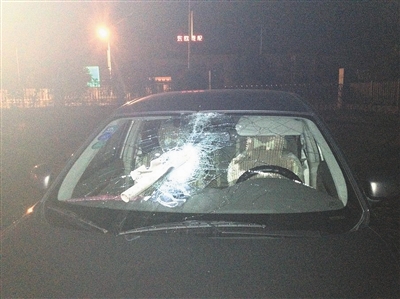 高速竟然飞来铁管子 直插在汽车挡风玻璃处