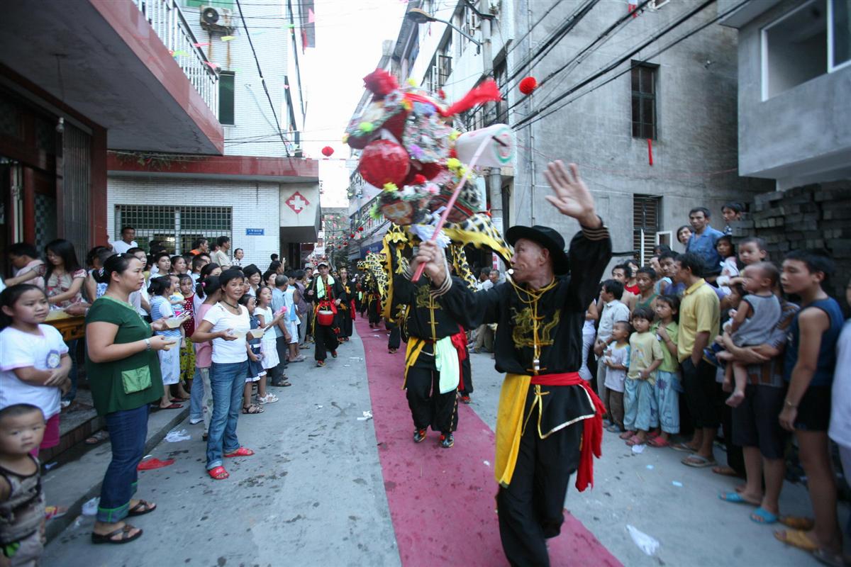 汤和文化节在龙湾宁村隆重举行,游行队伍走街穿巷表演节目,以这种特殊的方式纪念抗倭英雄。赵用 摄