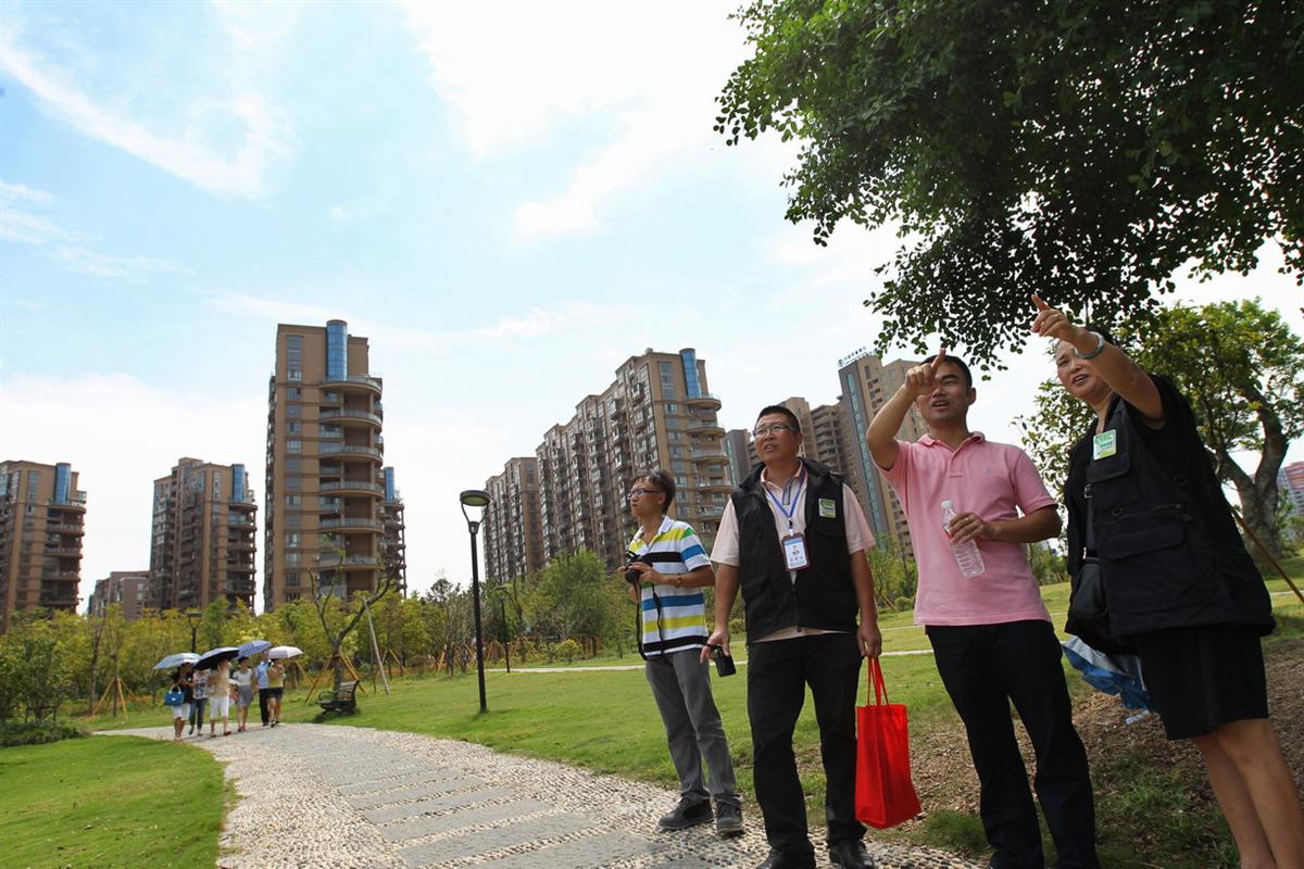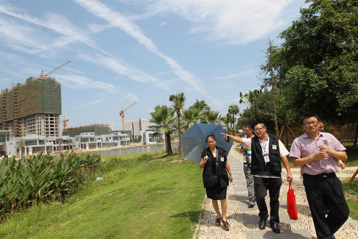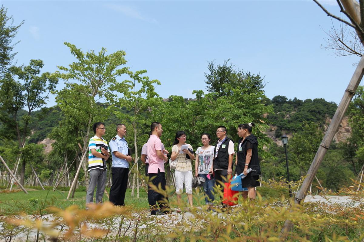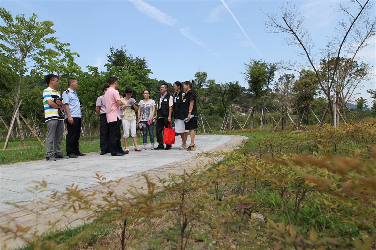 | 昨天上午,“破难攻坚市民监督团” 成员顶着炎炎烈日来到龙湾区永中街道龙翔湖公园督查点,看成绩找不足。苏巧将 摄 |
