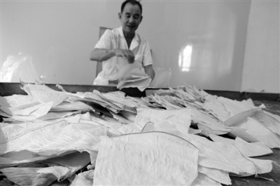 是什么让老板这么“底气十足”?回答是先进的自动流水线。原来,周成浪通过四年的研究,发明了全自动流水线。该流水线通过紫外线照射,使豆皮在无细菌的环境下封闭烘干。事实证明,通过此举制作出来的豆皮色泽匀称,不用防腐剂就可以保持五个月不腐烂。有人曾出300万元向周成浪购买该技术,被他婉拒。