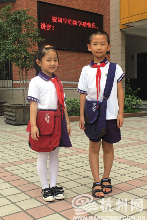 “这是我们在杭州找一家服装企业定做的,花了学校一个暑假的心血。”金校长说,学校德育处、各年级的班主任为书包的样式、功能分区和颜色等细节反复讨论,我们的出发点是让这个书包分量轻、耐用,有档次和识别度,还要有学校特色。