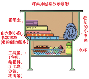 推行“三斤半书包”,学校设定了两周的适应期,班主任先教学生如何整理书包和抽屉,养成“不必需不带回家”的习惯。
