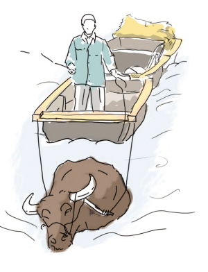 顾名思义,这是一种必须靠水牛来牵引的船。一般在水位较浅的河段运输货物,如稻草、柴火、石头,等等。