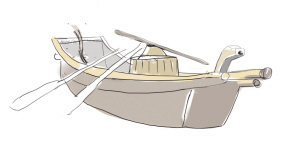 差船,也叫小梭飞船,行船速度比较快。船尾有一两支橹,船夫立着摇橹。船头放两个“石礅磉(sǎnɡ)”压船,以免行进中船头上翘影响速度。