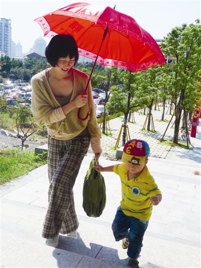 穿起长袖的市民带着宝宝来公园玩耍。碧瑜 摄