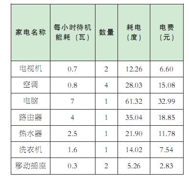 宁波电业局客户服务中心的王奕用电能表校验仪,对张海清家的电器进行了检测:液晶电视的待机能耗为0.7瓦,空调待机能耗为0.8瓦……全部检测下来,仅按正常的0.538元/度来计算,张海清家每年因待机多付的电费就达近百元(具体见下表)。