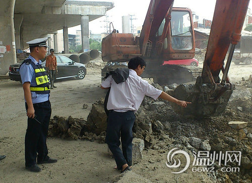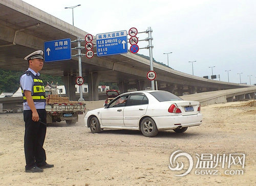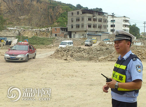 王海波站在尘土飞扬的路口,有那么几分站在硝烟弥漫的战场上的感觉,他与同事的努力,让温州最糟糕的交通区域之一保持井然的秩序,如果你有经过,请向他们的身影行个注目礼。(记者 颜弘炜)