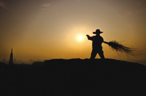 太阳升起,余师傅便开始一天的打扫工作。