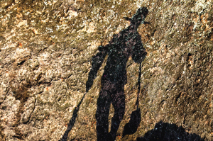 余师傅忙碌的身影映在石壁上