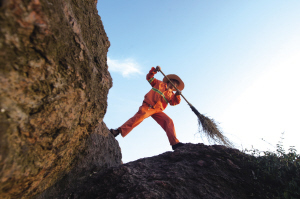 为了不留死角,再陡峭的岩壁,余师傅也得爬上爬下清扫干净。在宝石山上扫了十年,他已练就了一身攀爬的绝活。“脚尖踮起来,踩不平的地方,又可以防滑,又走得快。”余师傅摸索出了自己的路线,“噌噌噌”几步就登了上去,身手矫捷,如履平地,像极了攀岩走壁的武林高手。