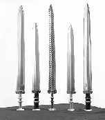 朱利尧铸造的五把越王剑,从左到右分别为湛卢、胜邪、纯钧、鱼肠、巨阙。