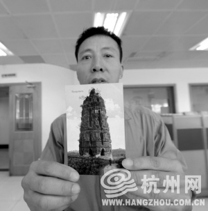 “西博会快开幕了,我给你们送来这张清末的雷峰塔明信片看看。”家住灵隐街道的市民张家平,昨天展示了新近收藏的清末雷峰塔明信片。