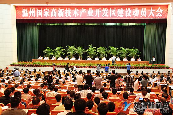 龙湾新闻网10月12日讯 昨天上午,温州国家高新技术产业开发区建设动员会在温州召开。全国政协副主席、科技部部长万钢,省委书记、省人大常委会主任赵洪祝在会上共同为温州市授牌并讲话。科技部副部长曹健林宣读国务院批文。省委常委、温州市委书记陈德荣在会上致辞,并介绍建设发展情况。省委常委、秘书长赵一德出席会议。会议由副省长毛光烈主持。