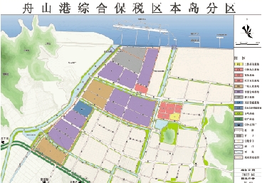 作为我国唯一的群岛型城市,舟山港口岸线资源丰富,岛屿类型各异,港口岸线在岛屿发展中也发挥不同的功能。舟山港综合保税区主要特色货种为大宗商品和为临港产业配套的产品,根据《浙江海洋经济发展示范区规划》,其主要为矿砂、煤炭、油(液体化工品)和粮。结合舟山实际,舟山港综合保税区按“一区两片”模式,设置本岛分区和衢山分区。这种模式属国内首家。本岛分区位于舟山本岛北部的舟山经济开发区新港工业园区,衢山分区位于衢山鼠浪湖岛。规划总面积5.85平方公里。