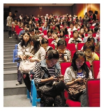离开场还有一个小时,场内就坐了一半观众,他们是来自各个学院的学生。