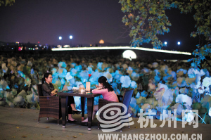 这么美的环境,你不仅可以漫步走过,还可以坐下来喝杯咖啡慢慢欣赏。昨晚,从断桥开始,沿着北山街往香格里拉饭店走,一路上临湖区域都摆上了桌椅,咖啡或茶则由北山街沿线的10家咖啡馆或是茶馆提供,价格和在店里吃一样。