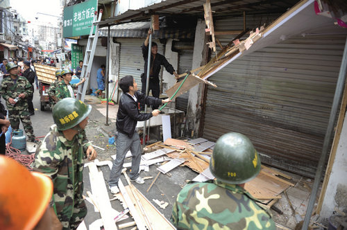 按照我市“六城联创”的整体部署和文明城市创建的相关要求,今天上午城管与行政执法局对高田路北段的流动摊贩坚决予以取缔,对沿街占道经营的一律要求“退路入室”,并不会影响周边市民买菜,反而对菜品卫生更具保障。机动一中队队长沈江表示:“今后将对沿街雨棚规范成统一蓝白相间式雨棚,同时建立长效管理机制,彻底消除该地段脏乱差现象。”(记者 范晨/ 文 王人望/摄 通讯员 周骞)