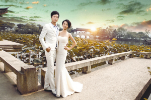 今年26岁的黄天飞是上虞市崧厦镇联胜村人,今年11月26日,他将和王露妮姑娘举办婚礼。10月5日早上7点多,这对准新人在上虞百官城区金夫人婚纱影楼的4名工作人员陪同下,前往杭州市萧山区的湘湖公园拍摄婚纱照。时值国庆长假期间,公园内人头攒动。