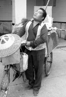 昨天,记者见到赵贡献的时候,他正在余姚市新建北路塑料城附近踩着清洁车清扫路面。