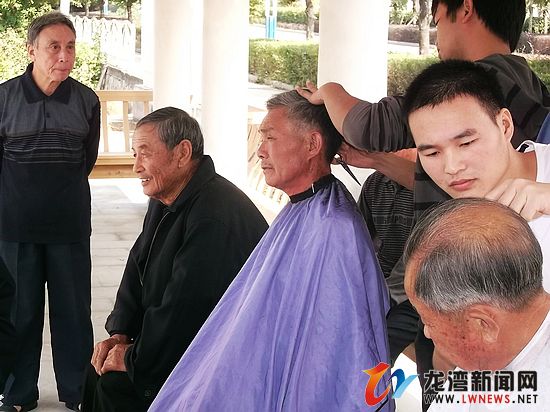 龙湾新闻网讯 10月23日,“九九重阳,情满夕阳”系列活动在瑶溪街道南洋社区举行。社区团工委联合龙湾护理志愿服务队志愿者阿秋和月琴,在南洋社区文化长廊里为老人们免费理发。