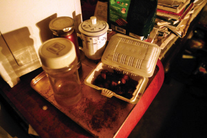 紧靠窗口的是个灶台,上面的油瓶已经空了,铁锅里还有饭,是小朱前天煮的,放点油,在锅里给自己炒了一碗。书桌上除了一堆大大小小教科书,还放着两只快餐盒,里面有两份荤菜,是小朱前一天晚上吃完剩下的,本打算昨天晚上继续吃。