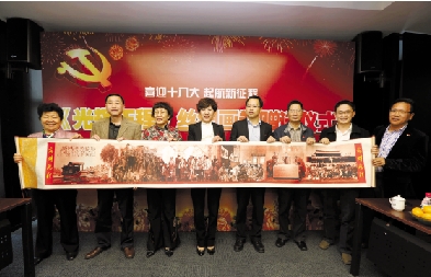 献礼十八大 丝绸画卷《光辉历程》赠送党史研究室