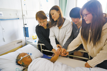 老人意识在逐渐恢复:前天已能认出家人,昨天已能进行简单问答,还和护工打招呼。看着公公一天比一天好,裘美英心中的期待也与日俱增。她每天向记者打听,四个姑娘找全了没有?一定要找到第四个姑娘,要当面说声谢谢,她才踏实。当她和记者说心里话的时候,四位姑娘在大家的簇拥下进来。