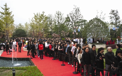 一大早,万科·龙湾花园展示中心周边龙江路等路段便被众多私家车包围,展示中心门口也人头攒动。据不完全统计,在样板区开放的两天内,约有8000名市民前来观摩。活动当天,等候参观的客户在展厅门口排起了长长的队伍。据悉,此次开放的现房实景样板展示区体量近1.2万㎡,工程浩大,投入巨大。此外,将现房实景与样板房相结合的营销方式也让购房者对产品有了更直观的体验,也体现出万科对自身产品的十足信心。