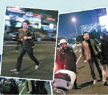 小许心慌,看到有人追,先跑到四明中路,接着左转往索菲特酒店方向跑去。